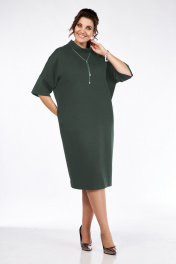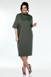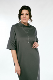 Платье женское, свободного силуэта изготовлено из трикотажного полотна. Горловина с отрезной деталью обработана воротником — стойкой. Рукав спущенный. В боковых швах обработаны карманы. В комплекте съемная подвеска. Обращаем Ваше внимание, что цвет на экране может отличаться от реального. Описание Длина платье по спинке — 107 см, длина плеча + рукав — 49 см. р.52 — ПОГ 68 см, ПОБ 64 см, р.54 — ПОГ 70 см, ПОБ 66 см, р.56 — ПОГ 72 см, ПОБ 68 см.