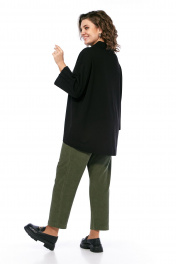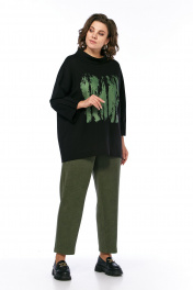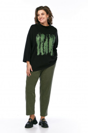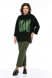 Комплект брючный двухпредметный, состоит из джемпера и брюк. Джемпер свободного силуэта, выполнен из трикотажного полотна. Горловина обработана воротником-стойка. Перед и спинка цельнокроеные. Рукава спущенные с защипами. Джемпер дополнен дизайнерской печатью. Брюки средней посадки, выполнены из вельветовой ткани. Заужены к низу. Пояс притачной со вставками с эластичной тесьмой. Застежка на молнию и петлю с пуговицей. В передних деталях брюк карманы с подрезным бочком. Обращаем Ваше внимание, что цвет на экране может отличаться от реального. Длина джемпера по спинке — 76 см, длина плеча + рукав — 59 см. р.60 — ПОГ 70 см ПОБ 68 см, р.62 — ПОГ 72 см ПОБ 70 см, р.64 — ПОГ 76 см ПОБ 72 см. Длина брюк по боковому шву — 102 см. р.60 — ПОТ 50 см ПОБ 64 см, р.62 — ПОТ 52 см ПОБ 66 см, р.64 — ПОТ 54 см ПОБ 68 см.