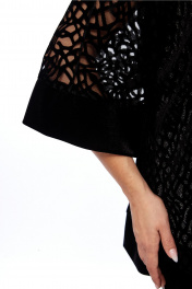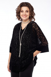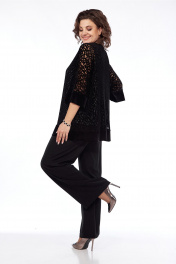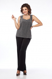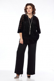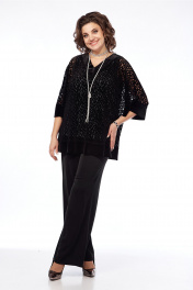 Комплект брючный трехпредметный, нарядный , состоит из туники , брюк и топа. Туника свободного силуэта выполнена из ажурной сетки с бархатным рисунком. Вырез головины V-образной формы. Горловина, низ рукавов и низ изделия обработан деталями из бархата. Рукава цельнокроеные. Топ прямого силуэта без рукавов, выполнен из трикотажного полотна. Брюки прямого кроя из костюмно-плательной ткани. Пояс притачной на эластичной тесьме. Обращаем Ваше внимание, что цвет на экране может отличаться от реального. Длина туники по спинке — 72 см, длина плеча — 53 см. р.52 — ПОГ 67 см ПОБ 72 см, р.54 — ПОГ 69 см ПОБ 74 см, р.56 — ПОГ 71 см ПОБ 76 см. Длина топа по спинке — 59 см. р.52 — ПОГ 54 см ПОБ 59 см, р.54 — ПОГ 56 см ПОБ 61 см, р.56 — ПОГ 58 см ПОБ 63 см. Длина брюк по боковому шву -108 см. р.52 — ПОТ 38 см ПОБ 57 см, р.54 — ПОТ 40 см ПОБ 59 см, р.56 — ПОТ 42 см ПОБ 61 см.