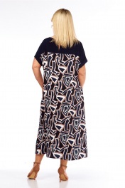 Платье женское А — силуэта, комбинированное. Верх переда и спинки выполнены из трикотажного полотна. Горловина круглой формы, окантована. По переду вышивка шнуром. Спинка разрезная, по горловине застежка на навесную петлю и пуговицу. Рукава спущенные с манжетами внизу. В боковых швах обработаны карманы. Обращаем Ваше внимание, что цвет на экране может отличаться от реального. Состав: вискоза — 64%, нейлон — 32%, спандекс — 4%. Описание Длина платья по спинке — 126 см, длина плеча — 29 см. р.54 — ПОГ 58 см ПОБ 65 см, р.56 — ПОГ 60 см ПОБ 67 см, р.58 — ПОГ 62 см ПОБ 69 см, р.60 — ПОГ 64 см ПОБ 71 см, р.62 — ПОГ 66 см ПОБ 73 см, р.64 — ПОГ 68 см ПОБ 75 см.