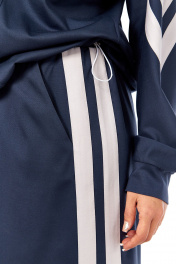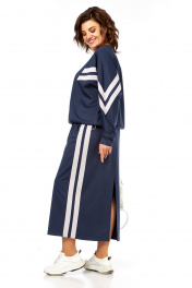 Костюм женский юбочный, состоит из джемпера и юбки. Выполнен из трикотажного полотна. Джемпер разрезной, со вставками из отделочной ткани. Горловина круглой формы. Рукава “летучая мышь”, внизу на манжетах. По низу джемпера кулиса со шнуром-резинкой и фиксаторами. Юбка заужена к низу. Пояс частично на резинке. По боковым швам декоративные вставки-лампасы. В юбке обработаны карманы. На задней части средний шов с разрезом внизу. Юбка на подкладке. Обращаем Ваше внимание, что цвет на экране может отличаться от реального. Описание Длина джемпера по спинке — 62 см, длина плеча — 74 см. р.52 — ПОГ 60 см ПОБ 60 см, р.54 — ПОГ 62 см ПОБ 62 см, р.56 — ПОГ 64 см ПОБ 64 см. Длина юбки по боковому шву — 90 см. р.52 — ПОТ 39 см ПОБ 56 см, р.54 — ПОТ 41 см ПОБ 58 см, р.56 — ПОТ 43 см ПОБ 60 см.