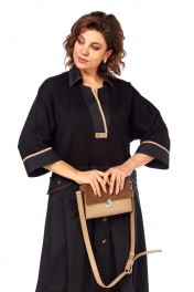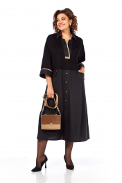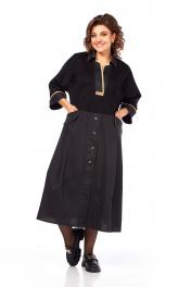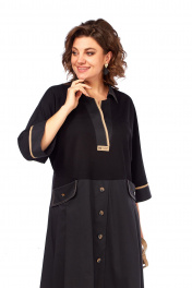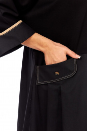 Платье женское, А- силуэта, выполнено путем комбинирования тканей. Лиф и рукава из трикотажного полотна. Юбка платья из х/б плащевки. По переду обработаны планки, декорированы нашивкой. Воротник стояче-отложной. Юбка платья расширенная, по передней части имитация планки с застежкой. Обработаны карманы с клапанами. От линии входа в карман заложены складки. Спинка разрезная. Декором служат декоративные пуговицы, отделочные строчки и отделочные детали по планкам и манжетам. Обращаем Ваше внимание, что цвет на экране может отличаться от реального. Описание Длина платья по спинке — 123 см, длина плеча + рукав — 59 см. р.52 — ПОГ 60 см ПОБ 62 см, р.54 — ПОГ 62 см ПОБ 64 см, р.56 — ПОГ 64 см ПОБ 66 см, р.58 — ПОГ 66 см ПОБ 68 см.