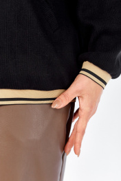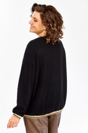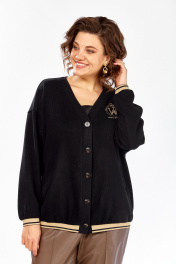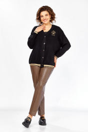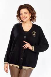Кардиган женский, изготовлен из трикотажного полотна. Горловина V-образной формы, застежка отрезная планка на петли и пуговицы. Карманы с листочками. По низу изделия и низу рукавов-декоративные довязы. Спинка цельнокроенная. Рукава спущенные длинные. Отделочный элемент — вышивка на детали переда. Длина кардигана по спинке — 70 см, длина плеча + рукав — 77 см. р.52 — ПОГ 61 см ПОБ 61 см, р.54 — ПОГ 63 см ПОБ 63 см, р.56 — ПОГ 65 см ПОБ 65 см.