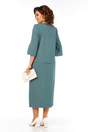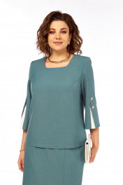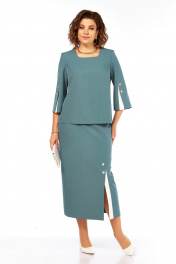 Костюм женский двухпредметный, состоит из блузы и юбки, выполнен из ткани костюмно-плательного ассортимента. Блуза прямого силуэта. Горловина фигурной формы. Перед с нагрудными вытачками. Спинка со средним швом. Рукава втачные, в них обработаны шлицы с декоративным элементом. Юбка прямого силуэта, верхний срез обработан обтачкой, в боковом потайная молния. По переду обработан ассиметричный рельеф в котором находится декоративная шлица. Юбка на подкладке. Обращаем Ваше внимание, что цвет на экране может отличаться от реального. Длина блузы по спинке — 58 см, длина рукава — 45 см. р.52 — ПОГ 57 см ПОБ 60 см, р.54 — ПОГ 59 см ПОБ 62 см, р.56 — ПОГ 61 см ПОБ 64 см. р.58 — ПОГ 63 см ПОБ 66 см. Длина юбки — 90 см. р.52 — ПОТ 44 см ПОБ 57 см, р.54 — ПОТ 46 см ПОБ 59 см, р.56 — ПОТ 48 см ПОБ 61 см, р.58 — ПОТ 50 см ПОБ 63 см.