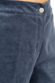 Брюки женские, свободного силуэта, выполнены из хлопкового вельвета. Пояс притачной, частично на резинке. Застежка на молнию, петлю и пуговицу. В передних деталях брюк обработаны боковые карманы с подрезным бочком. Длина брюк по боковому шву — 101 см. р.56 — ПОТ 45 см ПОБ 61 см, р.58 — ПОТ 47 см ПОБ 63 см, р.60 — ПОТ 49 см ПОБ 65 см.