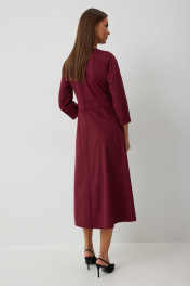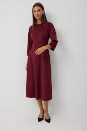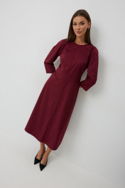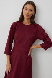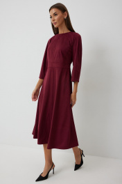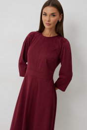 Платье женское полуприлегающего силуэта без подкладки, длиной до середины икры. Платье с отрезным лифом. По переду лиф с центральным швом, отрезными бочками и нагрудными вытачками. Спинка лифа с центральным швом и отрезными бочками. Отрезная юбка по переду и спинке со средним швом. Юбка соединяется с лифом отрезным поясом. Рукав-реглан полной длинны. Низ рукава и платья обработан швом «в подгибку». Горловина платья обработана обтачкой. По среднему шву спинки располагается застежка-молния. Длина изделия по спинке 118 см, 54 р. - 61 см, Длина рукава от горловины 58,5 см