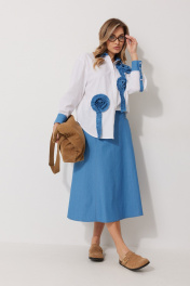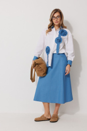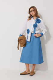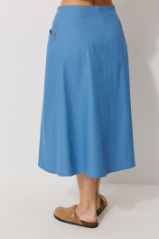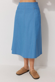 Юбка женская А – силуэта длиной до середины икры. Перед юбки состоит из 4 клиньев. Вверху передней части юбки располагается карман с отрезным бочком с хольнитенами по концам крмана. Спинка юбки состоит из 4 клиньев. Швы всех клиньев отстрочены контрастной отделочной строчкой По среднему шву юбки находится застежка – молния. Верхний срез юбки обработан обтачкой.