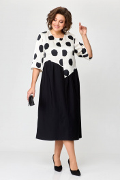 А-образное платье из атласа и хлопка с боковыми карманами Karina deLux M-1202 черно-белый