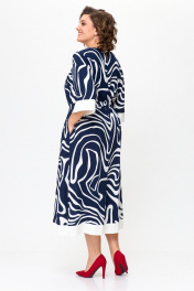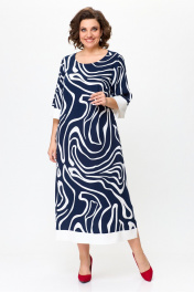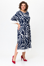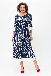 Платье из лёгкой вискозы. На тонкой подкладке. Силуэт прямой, к низу слегка расширен. Нагрудные вытачки. Горловина овальная. Рукав втачной, чуть расширен к низу. По низу рукава и платья отделка по низу однотонной светлой тканью. Платье без застёжки. Мягкий съёмный пояс из основного полотна.