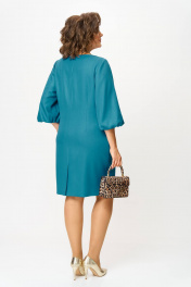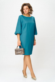 Нарядное платье выполнено из вискозной ткани с легким блеском. Платье имеет вырез лодочкой, который элегантно подчеркивает линию шеи. Объемные рукава добавляют романтичности и воздушности, создавая эффект легкой драпировки. Длина платья 97 см, длина рукава 47 см. Идеальный выбор для вечерних мероприятий и торжеств.