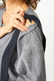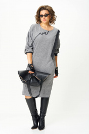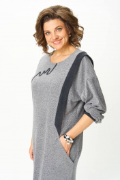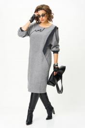 Платье трикотажное, прямое слегка зауженное к низу. Рукав втачной с манжетой. По переду прорезные карманы и отделка декоративным шнуром.