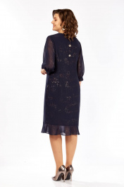 Платье женское на подкладке полуприлегающего силуэта с округлым вырезом горловины и притачным воланом по низу. По спинке застежка на планку с пуговицами. Рукав втачной одношовный с манжетой по низу. Длина платья 104 см, длина рукава 42 см, ширина рукава 24 см