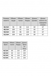Костюм в деловом стиле, состоит из жакета и брюк. Жакет приталенного силуэта, на подкладке. Без воротника. По переду выполнены вытачки защипы, отсроченные контрастной строчкой. На левой части переда декоративный карман-листочка. Рукава втачные, декоративная шлица на 3 пуговицы. Застёжка в жакете центральная, на 3 петли пуговицы. Спинка со средним швом и застроченными защипами. Брюки расширенные к низу. Пояс притачной частично на резинке, застёжка классическая гульфик на пуговицу и молнию.