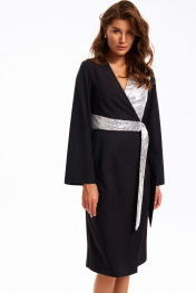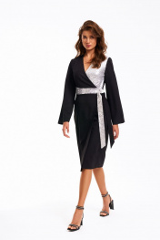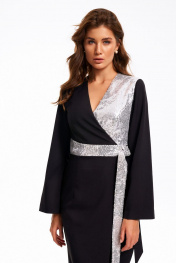 Черное платье на запах с пайетками и отрезным поясом KaVaRi 1062 черный