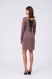 Прилегающее платье из трикотажного полотна. Рукав полноценной длины. По переду платье выглядит базовым, но весь акцент и изюминка на спине в виде глубоко выреза и контрастной шнуровки. Застёжка на потайную молнию сбоку. Сзади шлица.