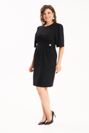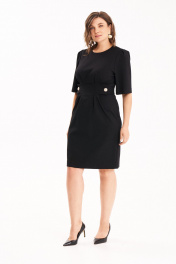 Приталенное платье из трикотажного полотна длиной до середины колена. По талии застрочены складки от которых идут декоративные паты с золотыми пуговицами. Рукав длиной до локтя с небольшими складками сверху. Застёжка на потайную молнию сзади._x000D_ Длина 44-48р - 97 см, 50-54р - 99,5см. Длина рукава 44-48р -34см, 50-54р - 35см.