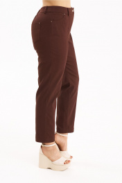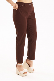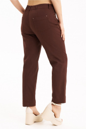 Брюки базовые с отделкой на передних и задних половинках. Изделие имеет комфортную среднюю посадку. Брюки на притачном поясе со шлёвками. Застежка на гульфик с молнией и пуговицу. Спереди боковые функциональные карманы, сзади накладные карманы. На карманах расположены холитены.