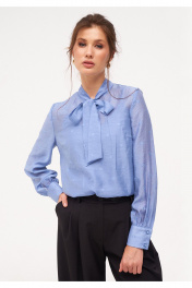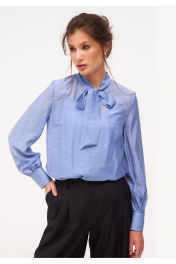 Блуза из вискозы с бантом и воротником стойкой KaVaRi 4016 голубой