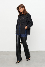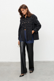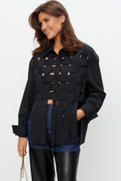 Хлопковая рубашка с дизайнерским решением по переду в виде переплетённых обтачных деталей. Линия плеча спущена, рукав с длинной манжетой, которую можно складывать пополам. Застёжка на планку с пуговицами спереди Длина 42-44р - 70,5см 46-48р - 71см Длина рукава с манжером 42-48р - 63см