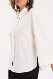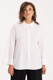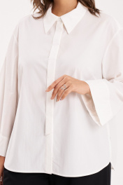 Хлопковая рубашка свободного силуэта со спущенной линией плеча и рукавом 7/8 с широкими отворотами. По бокам разрезы, сзади отрезная кокетка. Спереди на планку настрочена деталь имитирующая галстук. _x000D_ Длина 48-52р - 71 см, 54-58р - 72,5 см. Длина рукава 48-52р - 50 см, 54-58р - 53 см. _x000D_