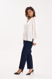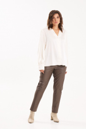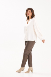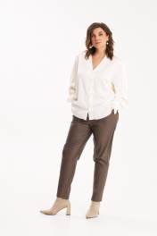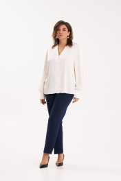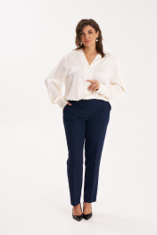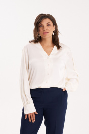 Блузка из струящейся атласной ткани прямого силуэта с V-образной горловиной и застёжкой на пуговицы. Рукав длинный на манжете. Спинка слегка длиннее переда. По бокам разрезы._x000D_ Длина блузки 48-52р – 69см, 54-58р - 72см._x000D_ Длина рукава 48-58р – 64см._x000D_
