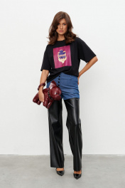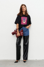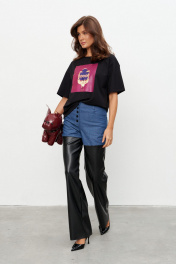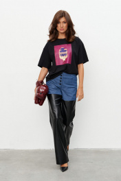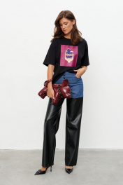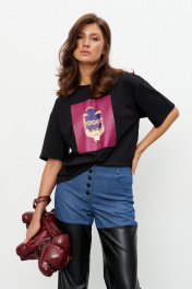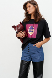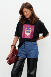 Оверсайз футболка из плотного трикотажа с ярким принтом «бокал». Линия плеча спущена, горловина отделана эластичной бейкой. Длина по середине спинки 44-48р -61,5 см 50-54р -62,5см Длина рукава 44-54р -19,5 см