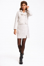 Жакет-«косуха» женская со смещенной застежкой на молнию, на подкладке. Перед с вертикальными рельефами и косыми прорезными карманами «в рамку» на молнии. Спинка с вертикальными рельефами. Рукав втачной двухшовный до линии запястья. Воротник стояче-отложной на отрезной стойке. Жакет длиной до середины бедра. По низу притачной пояс, который застегивается на 2 кнопки. В углах воротника расположены декоративные кнопки. Длина изделия - 52 см Длина рукава - 61 см