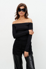 Джемпер из трикотажного полотна прилегающего силуэта с открытыми плечами. Отрезная деталь по верху изделия плотно фиксирует изделие на фигуре. Длина рукава 42р -59 см 44-46р - 59,5 см 48р - 60 см