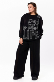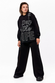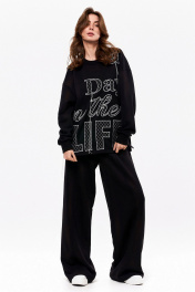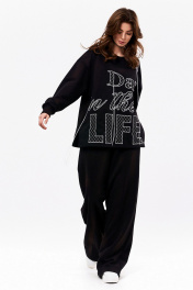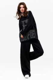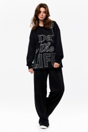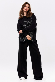 Брюки и кардиган из трикотажа с вышивкой и резинкой на талии KaVaRi 8019 черный