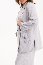 Костюм состоящий из жакета и брюк. Жакет прямого силуэта со спущенной линией плеча и двубортной застёжкой. Все края жакета с сырыми срезами, которые отстрочены контрастной ниткой. Спереди два кармана с клапанами. Брюки прямые от бедра на резинке по талии с карманами по бокам._x000D_ Длина жакета 48-58р - 71 см._x000D_ Длина рукава 48-52р - 56,5 см, 54-58р - 58см_x000D_ .Длина брюк от талии 48-58р - 113 см._x000D_
