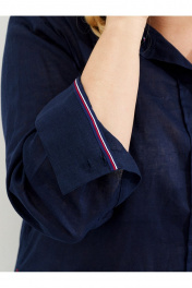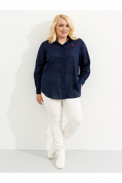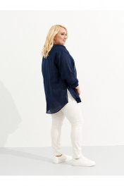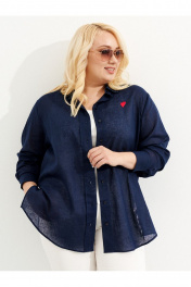 Летняя оверсайз рубашка из льна с декоративной тесьмой Ketty К-03840 синий