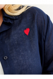 Летняя рубашка оверсайз бренда Ketty - один из самых популярных предметов женской одежды. Рубашка выполнена из натуральной ткани. Модель свободного кроя. Декор в виде сердечка придаст рубашке неповторимость. Горловина и манжеты обработаны декоративной тесьмой, сбоку рубашка дополнена разрезами. Удлиненная модель подойдет как для девушек, так и для взрослых женщин, и сделает вашу фигуру более изящной. Независимо от того, какой стиль вы предпочитаете, эта модная рубашка с длинным рукавом станет отличным дополнением к вашему гардеробу. Выбирайте летнюю льняную оверсайз модель для создания стильных образов и чувства комфорта в любое время года!