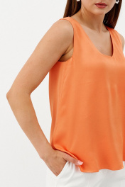 Блузка свободного силуэта бренда Ketty из однотонной вискозной ткани без рукава. Красивая легкая блузка, слегка расширенная к низу. Стильная вещь, которая отлично сочетается с жакетами, пиджаками и кардиганами. Однотонная блузка станет основой вашего гардероба и разнообразит комплекты повседневной одежды, а также может стать частью вечернего образа.