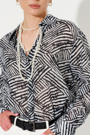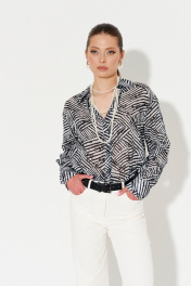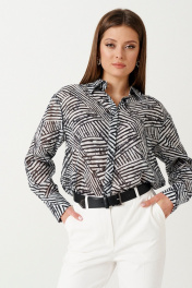 Блузка из хлопка свободного кроя с воротником-стойкой Ketty К-13240 черно-белый