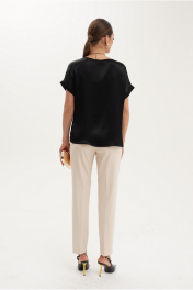 Эта базовая блузка из мягкой вискозной ткани идеально подходит для повседневной носки, делая её незаменимой частью гардероба. Блузка прямого силуэта с легким спущенным плечом и аккуратной проймой, оформленной притачной манжетой, позволяет чувствовать себя комфортно весь день. Модель с бейкой по горловине и разрезами по боковым швам добавляет универсальности и стиля, делая её идеальным дополнением к любому образу – от офисного до повседневного. Блузка сочетается с брюками, юбками и джинсами, создавая элегантный, но непринужденный образ. Идеальный выбор для тех, кто ценит комфорт и стиль в повседневной жизни.