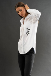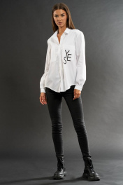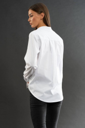 Рубашка вискоза полуприлегающего силуэта с втачными рукавами, удлиненная по спинке. Обработка низа рубашки в форме овала.