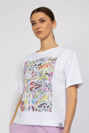 Джемпер свободного кроя. Удлиненный рукав, с подворотом рукава. Ткань кулирная гладь , качество Пенье, плотность 200 г.м2 - Только деликатная стирка 30 градусов - Не использовать отбеливатели - Изделие вывернуть наизнанку - Допускается осветление принта после первой стирки на 10%