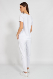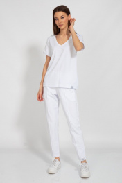 Джемпер с V-образным вырезом и отделкой воротника и манжет в цветах костюмов. Ткань 2-х ниточный футер с невероятно нежным внутренним слоем из хлопка, качество Пенье, плотность 235 г.м2 Идеально в сочетании с моделями 30983109, 3109. Только деликатная стирка 30 градусов, не использовать отбеливатели, изделие вывернуть наизнанку.