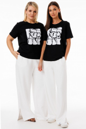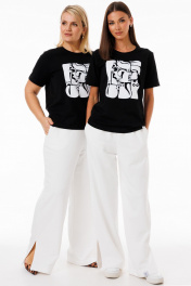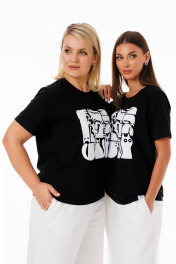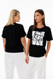 Черная футболка из трикотажа с яркими принтами Kivviwear 4039.11