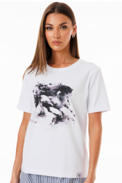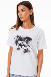 Белая футболка из кулирной глади с принтами Kivviwear 4039.12