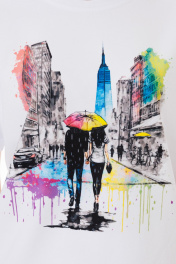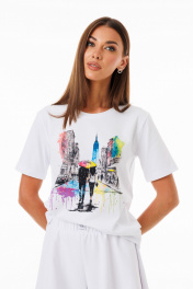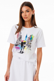 Белая футболка из хлопка с принтами и эластаном Kivviwear 4039.13