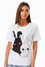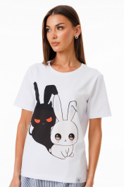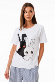 Белая футболка из трикотажа с разнообразными принтами Kivviwear 4039.14
