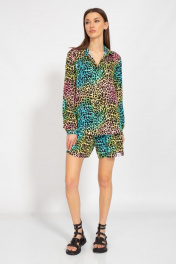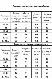 Костюм. Рубашка вискоза полуприлегающего силуэта с втачными рукавами, удлиненная по спинке. Обработка низа рубашки в форме овала. Шорты вискоза свободного кроя. Карманы в боковых швах. Только деликатная стирка 30 градусов, не использовать отбеливатели, изделие вывернуть наизнанку