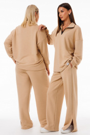Бежевые брюки палаццо из мягкого трикотажа с разрезами Kivviwear 4132.10