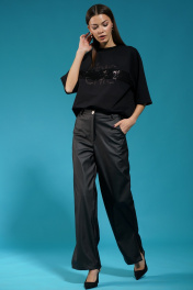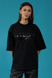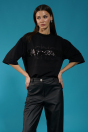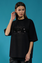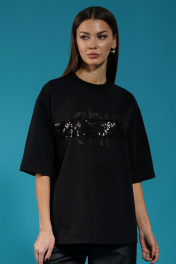 Черный удлиненный джемпер с пайетками и приспущенным рукавом Kivviwear 4143.06