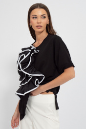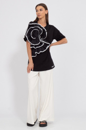 Летний джемпер из футера с объемным цветком и разрезами Kivviwear 4188.03