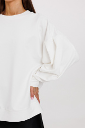 Этот джемпер свободного силуэта, изготовленный из высококачественного двухниточного футера с нежным изнаночным слоем, обволакивает вас мягкостью и теплом. Его рукава со складками по пройме добавляют изящности и оригинальности в силуэт, делая его стильным и уютным одновременно. Идеален для прохладных дней, этот джемпер подарит комфорт и подчеркнет вашу утонченность, создавая гармоничный образ для повседневной носки. Только деликатная стирка 30 градусов, не использовать отбеливатели, изделие вывернуть наизнанку.