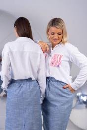 Женская блуза из льна с вискозой – стиль и комфорт в каждом движении Ищете элегантную и удобную блузу для создания утонченных образов? Женская блуза из ткани лен с вискозой – идеальный выбор! Модель приталенного силуэта подчеркнет вашу фигуру, а спущенный рукав добавит образу легкости. Натуральные материалы: сочетание льна и вискозы обеспечивает воздухопроницаемость и мягкость. Модные детали: накладные нагрудные карманы с ярким принтом делают блузу стильным акцентом в образе. Универсальность: легко комбинируется с юбками, брюками и джинсами – подойдет для офиса, прогулок и встреч. Обновите гардероб с женской блузой из льна и вискозы – комфорт и стиль в одной модели! Только деликатная стирка 30 градусов, не использовать отбеливатели, изделие вывернуть наизнанку