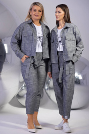 Льняной костюм с жакетом на пуговицах и укороченными брюками – стиль и комфорт в каждой детали Обновите свой гардероб этим летом с элегантным льняным костюмом, который сочетает в себе утонченный жакет и удобные укороченные брюки. Идеальный комплект для тех, кто ценит натуральные материалы, удобство и современный крой. Жакет: Короткий укороченный фасон с рукавом реглан подчеркивает женственный силуэт Накладные карманы добавляют стильный акцент и практичность Застежка на пуговицы по переду для элегантного образа Натуральный лен обеспечивает комфорт даже в жаркие дни Брюки: Укороченный зауженный крой визуально удлиняет ноги Эластичный пояс гарантирует идеальную посадку без дискомфорта Боковые карманы в швах – удобство в повседневной носке Дышащий льняной материал для свободы движений Почему этот костюм – must-have сезона? Универсальный капсульный комплект для офиса, прогулок и встреч Натуральный экологичный лен – гипоаллергенный и приятный к телу Стильное сочетание классики и современных трендов Легко комбинируется с топами, блузами и обувью от балеток до босоножек Выбирайте льняной костюм с жакетом и брюками – ваш идеальный вариант для создания стильных летних луков! Только деликатная стирка 30 градусов, не использовать отбеливатели, изделие вывернуть наизнанку.