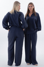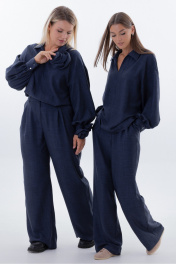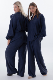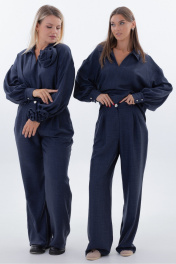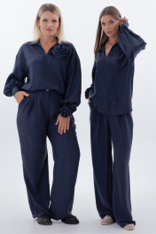 "Костюм со съемным декором Kivvi Wear — Гармония Свободы Kivvi Wear представляет идеальный дуэт, в котором элегантность встречается с безграничной свободой, это гармоничный ансамбль, где каждая деталь продумана для вашего комфорта и самовыражения. Блуза свободного кроя с отложным воротником и глубоким вырезом создает утонченную основу образа. Широкие рукава со сборкой на манжетах мягко ниспадают, добавляя пластичности каждому движению. Главная особенность — съемные декоративные цветы из основной ткани, которые позволяют разнообразить ваш образ: разместите их на груди или рукавах для романтичного акцента или уберите для лаконичной строгости. Брюки палаццо с высокой посадкой и скрытыми карманами продолжают философию комфорта и эстетики. Их струящийся силуэт визуально вытягивает линию ног, даря ощущение невесомости и легкости. Носите этот костюм как готовый ансамбль для создания цельного элегантного образа или комбинируйте вещи отдельно с другими элементами гардероба. Продуманный дизайн делает его актуальным для любого мероприятия."